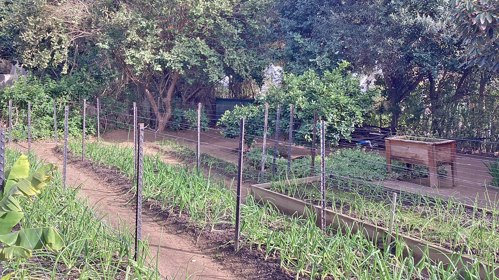The outdoor space also includes a productive vegetable patch, lei water irrigation, and a large water storage tank, making this property as practical as it is picturesque.